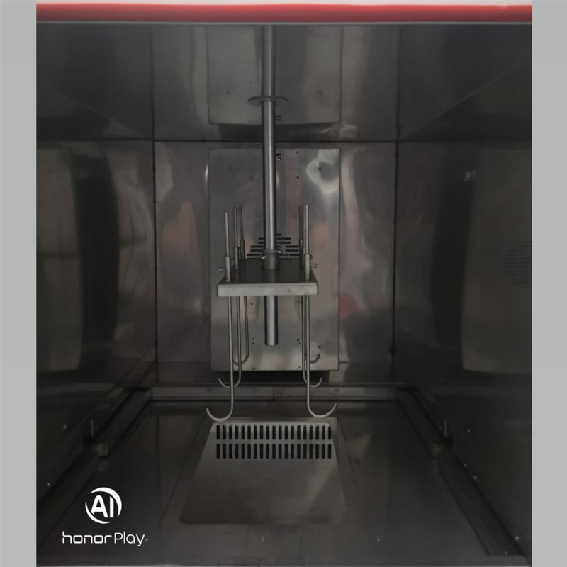 2.6. V souladu s požadavky testu se vzorky periodicky suší v sušicí peci a ponořují se do komory pro ponoření do soli. Před každým cyklem se individuálně nastaví provozní teplota sušicí pece a komory pro ponoření soli a aktivují se jejich příslušné systémy regulace teploty. Jakmile komory dosáhnou požadovaných pracovních teplot, nakonfiguruje se doba sušení (např. 50 minut) a doba ponoření (např. 20 minut), následuje spuštění a aktivace příslušných systémů řízení teploty. Jakmile komory dosáhnou požadované provozní teploty, nastavte dobu sušení (např. 50 minut) a dobu ponoření (např. 20 minut) spolu s počtem cyklů. Stiskněte tlačítko start (za normálních podmínek je stojan na vzorky umístěn v sušicí komoře). Zkušební vzorky pak podstoupí periodické cykly sušení a ponoření podle naprogramovaného plánu. Po ukončení doby sušení (např. 50 minut) se otevřou přepážková dvířka mezi sušicí a ponornou komorou. Elektrická tlačná tyč umístěná na vrcholu komory pak spustí zkušební vzorek do ponorné komory. Současně kryt v horní části tlačné tyče utěsňuje průchod vzorku a izoluje horní a spodní komoru. Když doba ponoření (např. 20 minut) skončí, elektrická tlačná tyč zvedne vzorek zpět do sušící komory. Mezilehlá přepážková dvířka se poté automaticky zavřou a znovu izolují obě komory. Tato sekvence tvoří jeden cyklus, který se opakuje podle předem nastaveného počtu cyklů, dokud test neskončí. Kromě toho doba úplného ponoření nebo vytažení každého vzorku nesmí přesáhnout 2 minuty. Navíc, aby bylo možné vyhovět speciálním požadavkům, je toto zařízení vybaveno samostatnými tlačítky pro otevření a zavření pro mezilehlé přepážkové dveře. Držák vzorků je také vybaven tlačítkem pro okamžité zvednutí, které umožňuje zvednout nebo spustit vzorek podle potřeby pro provozní potřeby.
